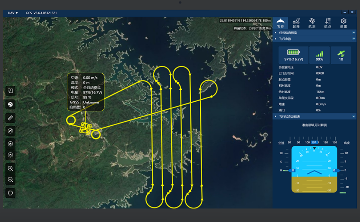基于航测用户中心设计思想建立的人机交互界面,专为航测新手设计,智能的地面站航线规划算法,优化航线规划操作步骤,一键生成测绘航线,保证数据采集精度的基础上,减少数据采集量,天幅度优化航线里程,带来高效的航测体验。