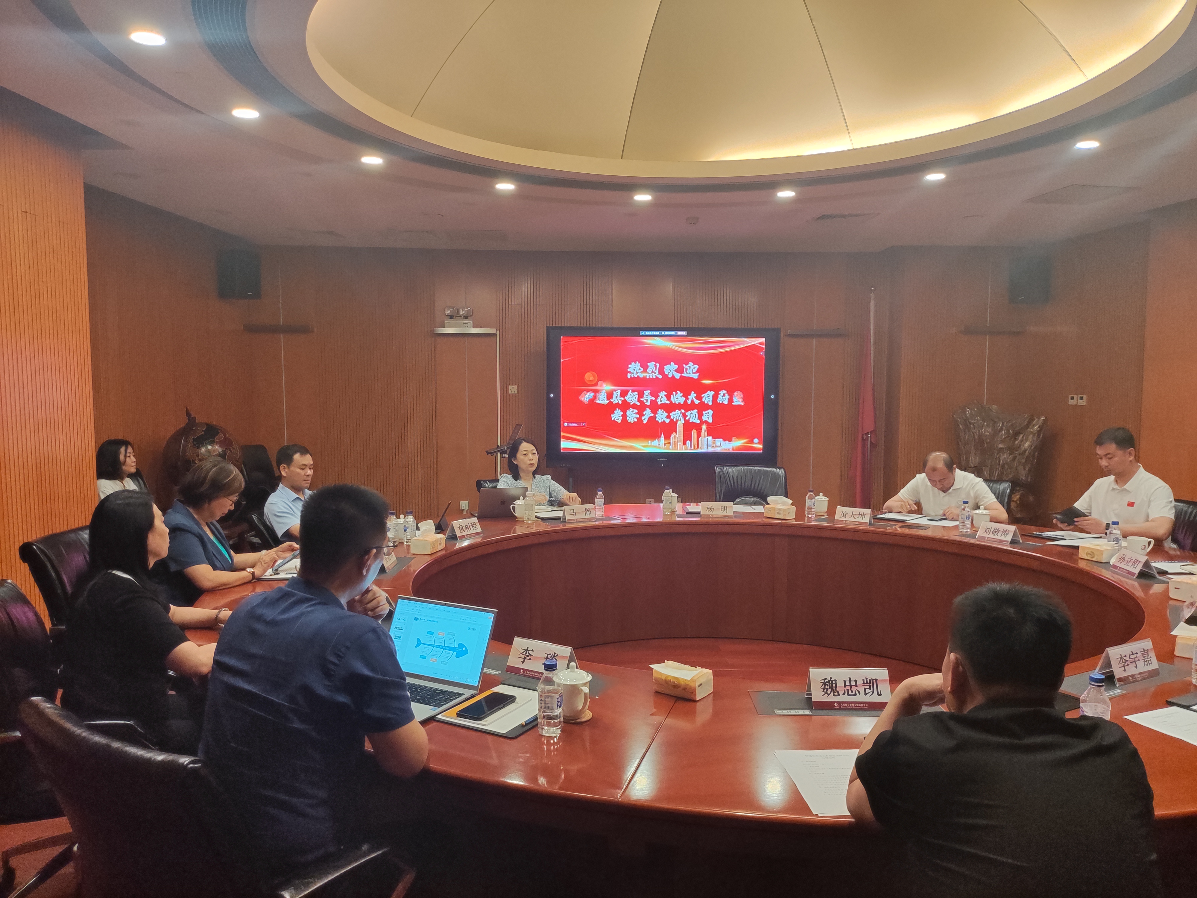 7月9日,应大有集团邀约,天津产教城集团与伊通县人民政府进行座谈交流。伊通县委书记孙立阳,县委常委、办公室主任高跃永,县委常委、副县长刘敬涛,副县长李宇嘉,伊通经济开发区党工委书记、管委会主任黄大坤,自然资源局局长魏忠凯,商务局局长杨明,大有蔚蓝董事长吴晓梅,常务副总兼财务总监奎建生,产教城集团总经理马静出席座谈。