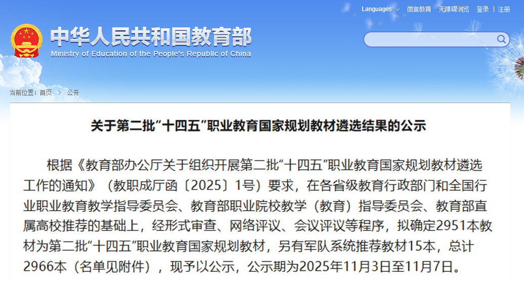 近期,国家教育部职业教育与成人教育司发布《关于第二批“十四五”职业教育国家规划教材遴选结果的公示》,由远洋航空组织编写,机械工业出版社出版的无人机专业教材《植保无人机操控技术》光荣入编!